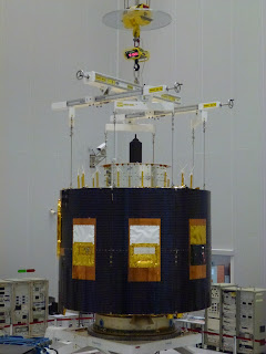Before fuelling MSG-3, the exact dry mass of the satellite needs to be determined. This dry mass, summed up with the mass of propellant plus/minus the few red and green tag items to be added and removed for launch, will provide the exact mass the spacecraft at launch.